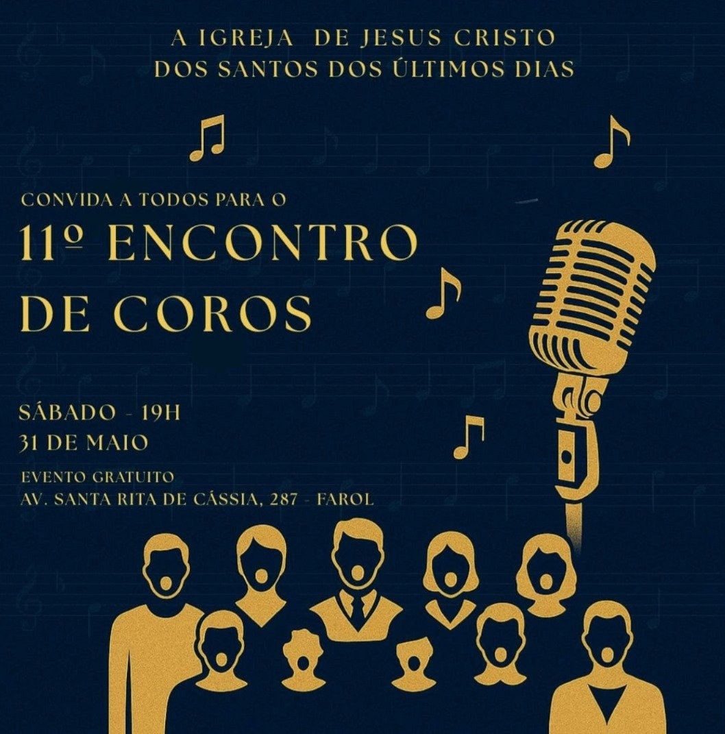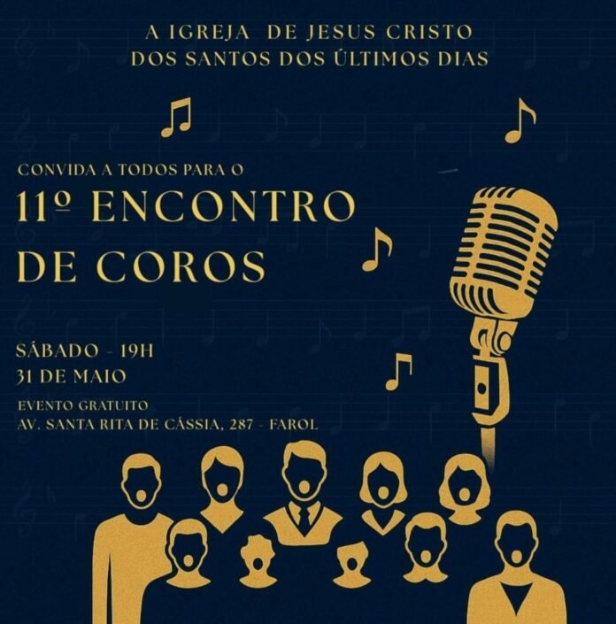 No dia 31 de maio de 2025, às 19h, a Igreja de Jesus Cristo dos Santos dos Últimos Dias promove o 11° Encontro de Coros, um evento musical imperdível que reunirá 10 dos melhores coros de Alagoas. Este encontro é uma oportunidade única para celebrar a música e o canto coral, além de homenagear o maestro Luiz Martins por seus relevantes serviços prestados ao canto coral em Alagoas.