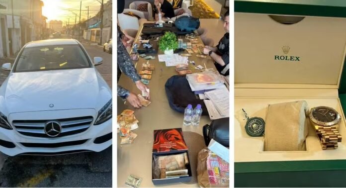 Carro de luxo, dinheiro e relógio Rolex apreendido em operação da PF contra funkeiros e influenciadores — Foto: Reprodução