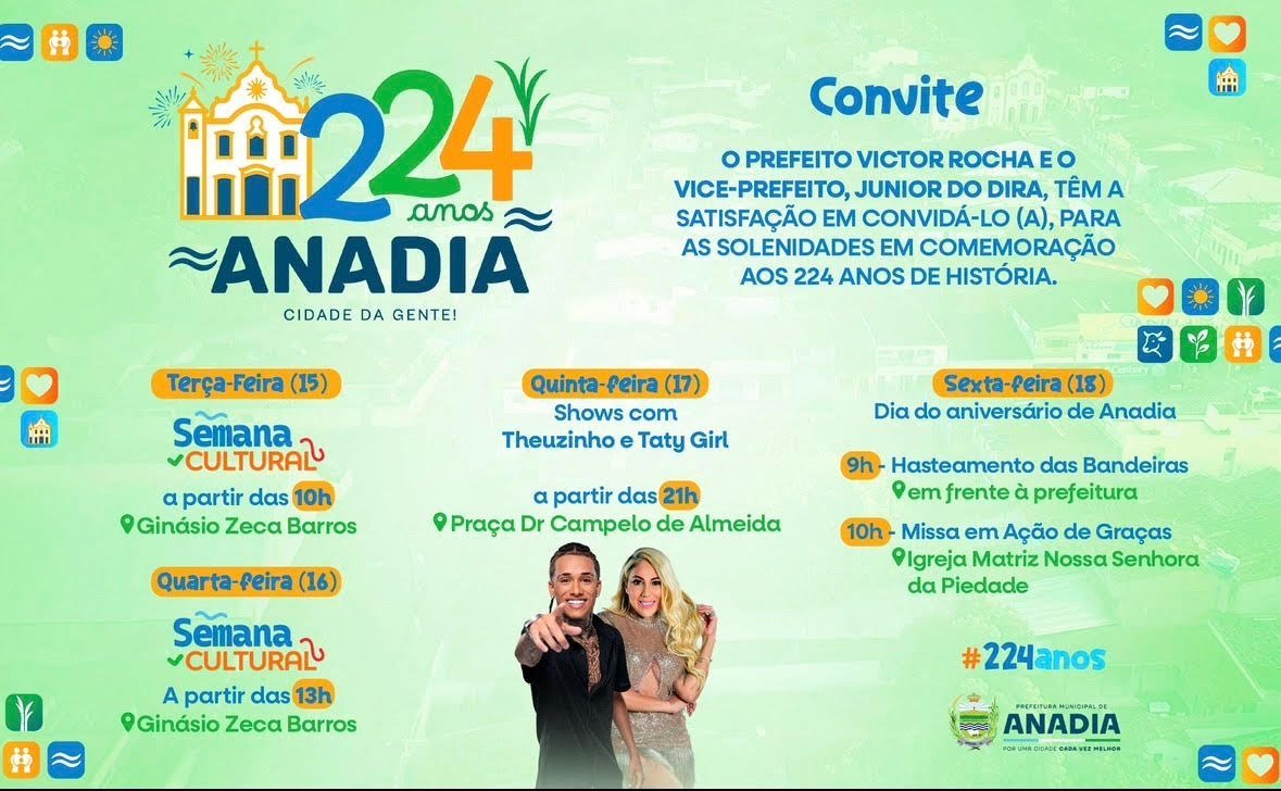 224 anos: Prefeitura de Anadia anuncia programação da Semana Cultural – AMA