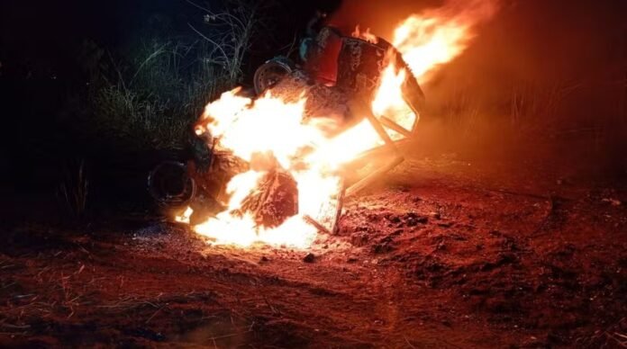 Carro com 5 ocupantes pegou fogo após a batida na MGC-497 — Foto: PMRv/Divulgação