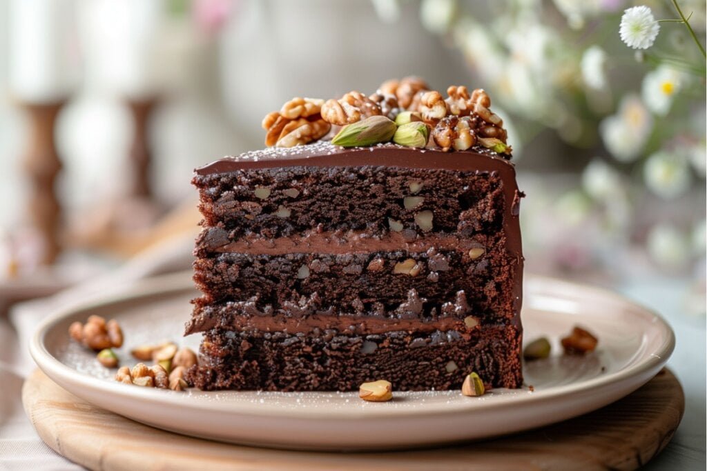 Bolo de chocolate com pistache e nozes (Imagem: Mesve79 | Shutterstock)