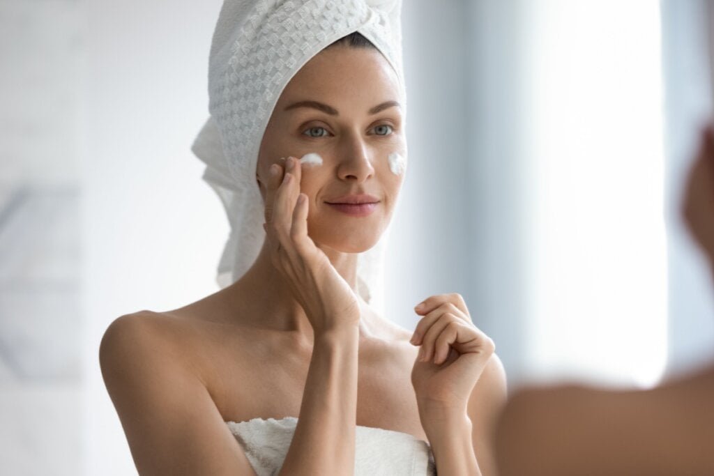 Depois de retirar a maquiagem é essencial hidratar a pele do rosto (Imagem: fizkes | Shutterstock)