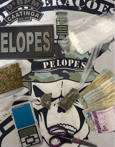 No local, a PM encontrou 145 gramas de maconha, uma balança de precisão e embalagens plásticas comumente utilizadas para comercialização de entorpecentes.