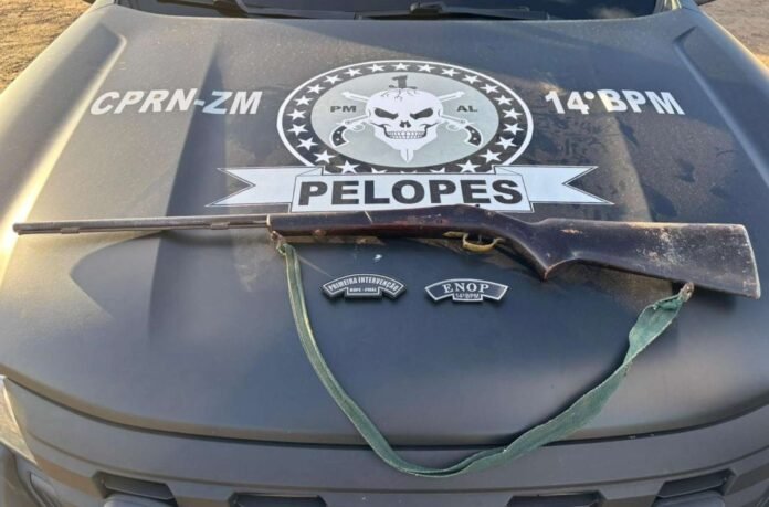 Não havia pessoas presentes no momento da abordagem, sendo o armamento recolhido e apresentado na central de flagrantes para as providências cabíveis.