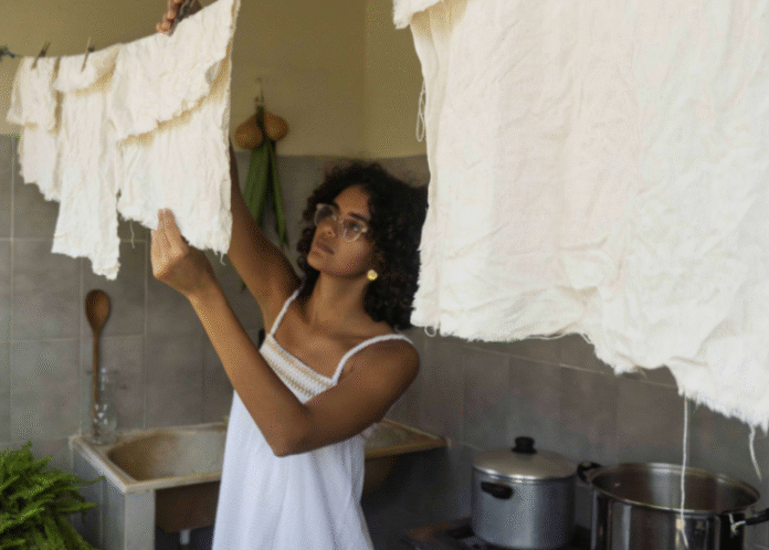 “Iniciei no universo da tinturaria botânica em 2018, testando a pigmentação de cascas de cajueiro, trazidas da roça de familiares. Observando o tom rosado resultante, surgiu o desejo de investigar as cores do Sertão e, através da pesquisa, explorei o potencial tintório de outras plantas da região. Essa busca criativa vinculada à terra, abrange tanto uma dimensão estética, quanto uma aproximação respeitosa com as singularidades das plantas da Caatinga”, destacou.