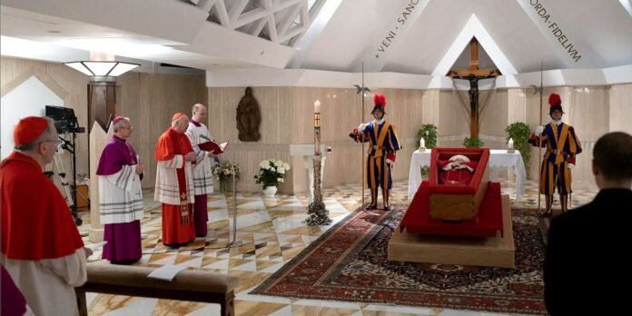 O caixão com o corpo do papa Francisco será trasladado da capela da Casa de Santa Marta para a Basílica de São Pedro nesta quarta-feira (23).