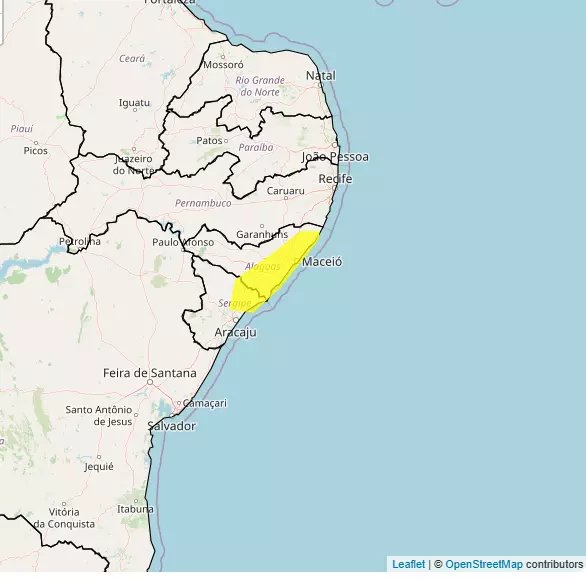 Já o segundo alerta se estende para o leste alagoano e vai atingir seis municípios: