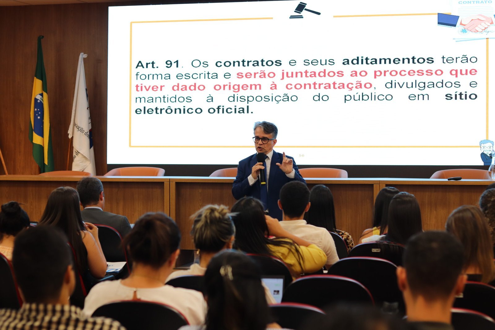 A capacitação abordou conteúdos teóricos e práticos sobre temas essenciais da Lei nº 14.133/2021, incluindo formalização e execução contratual, gestão e fiscalização, reequilíbrio econômico-financeiro, responsabilidade dos agentes públicos e jurisprudência atualizada dos Tribunais de Contas.