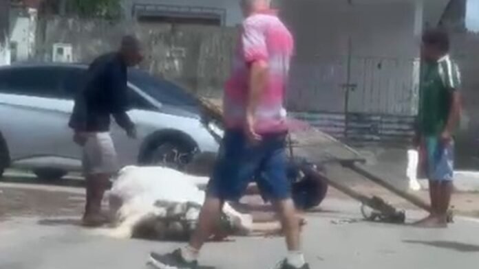 O flagrante, feito por um morador, causou indignação. “Animal cansado… mataram o bicho, pô. Ainda querem levantar chutando”, lamenta o autor do vídeo, que também mostrou o acúmulo de lixo na área, aumentando o clima de abandono e negligência.
