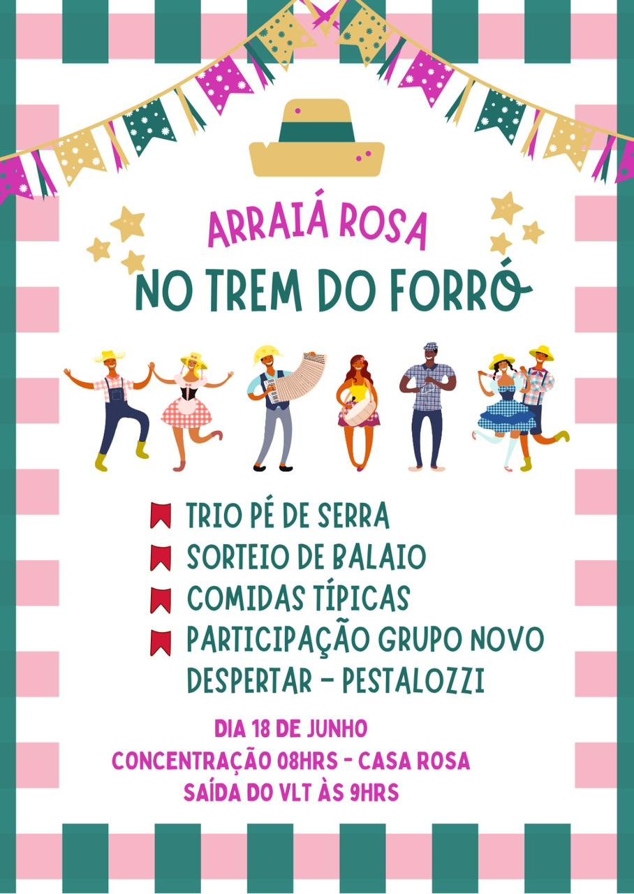 Em clima de festa junina, a cidade se prepara para receber um dos eventos mais animados do mês: o “Arraiá Rosa no Trem do Forró”, que acontecerá no dia 18 de junho. A iniciativa une cultura popular, inclusão e muita diversão em um passeio temático a bordo do VLT, prometendo encantar participantes de todas as idades.