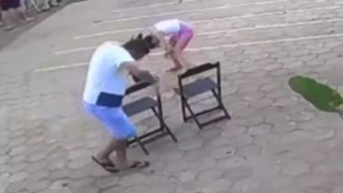 O vídeo de uma câmera de segurança registrou o momento em que pedestres correm assustados. Depois, é possível ver um homem e uma mulher sentados em cadeiras, abanando os rostos para afastar os insetos. Assista ao vídeo acima.