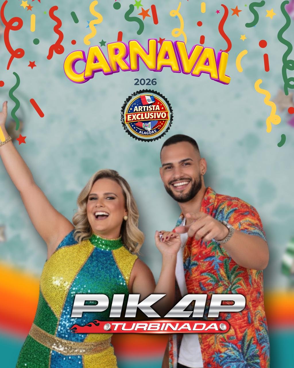 Para o Carnaval, a Pikap Turbinada entrega um show totalmente voltado para a rua, com linguagem musical pensada para trios elétricos, blocos e grandes circuitos, reunindo sucessos do axé e músicas que mantêm o público em constante animação do início ao fim.