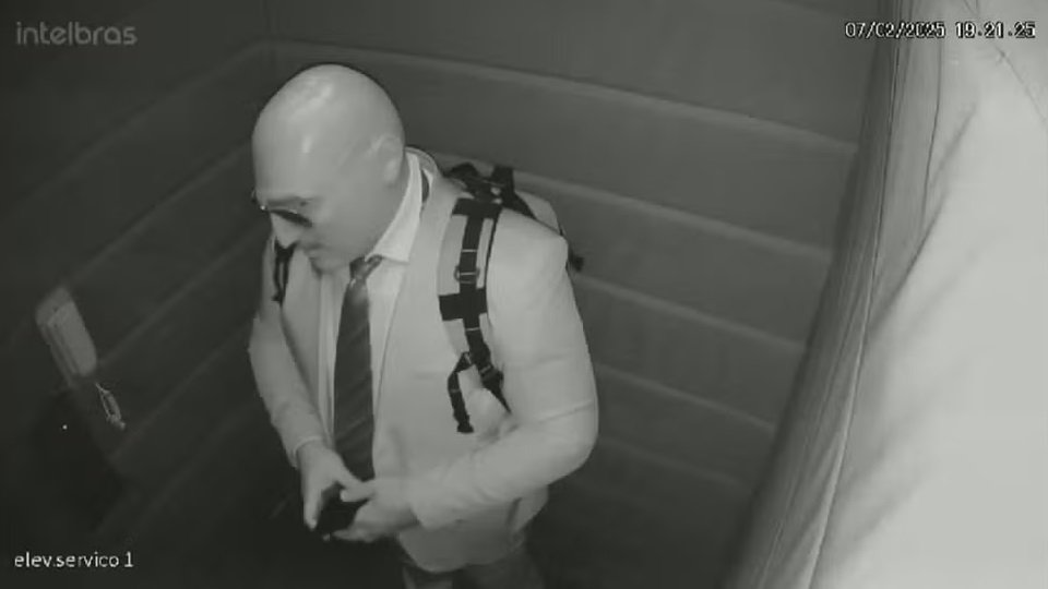 Investigações mostram que o advogado criminalista Luís Maurício Martins Galda entrou em apart-hotel com máscara realista — Foto: Reprodução/ TV GloboO crime aconteceu no dia 7 de fevereiro. Os policiais afirmam que o autor é o advogado criminalista Luís Maurício Martins Galda. As câmeras de segurança do apart-hotel o flagraram vestindo terno, luvas e uma máscara de silicone que imitava o rosto de um homem calvo. Durante quase todo o tempo, ele permanece com um celular no ouvido, indicando que falava com alguém.