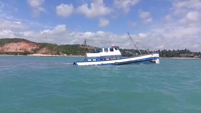 Um barco pesqueiro naufragou e provocou o vazamento de combustível nas águas da Praia de Japaratinga, no Litoral Norte de Alagoas.