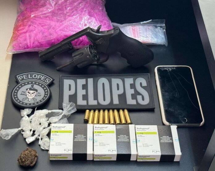 Um homem foi preso com um revólver calibre 38 com oito munições calibre 38, uma munição calibre 32; 5 gramas de maconha; 10 gramas de cocaína e três caixas de medicamento sedativo. O flagrante, realizado pelo 3º Batalhão de Polícia Militar (BPM), ocorreu por volta das 10h30 da manhã de terça-feira (29), no Povoado Olho d’Água do Luiz Carlos, na zona rural de Taquarana.