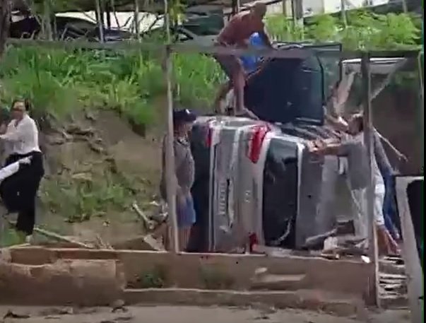 Bebê de três dias e duas mulheres ficam feridas após veículo cair de barreira | Foto: Reprodução