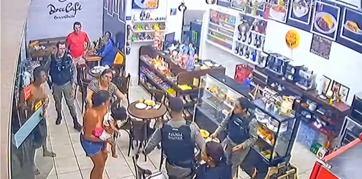 A câmera de segurança do estabelecimento flagrou o momento que a mãe da criança, em desespero, pediu ajuda dos policiais da Patrulha Maria da Penha, que estavam na conveniência. A filha estava desacordada e sem sinais aparentes de respiração. Assim, os policiais iniciaram manobras de reanimação ainda no local.