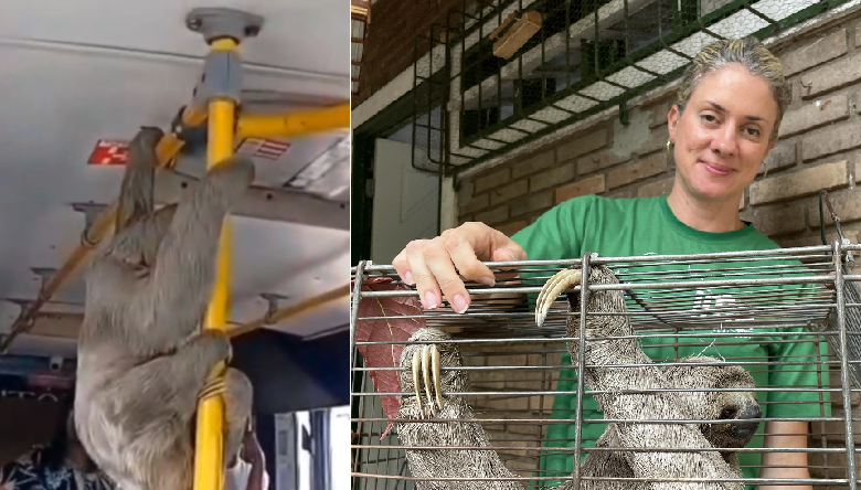 Bicho-preguiça flagrado em ônibus é resgatado e recebe cuidados no Cetas; vídeo
