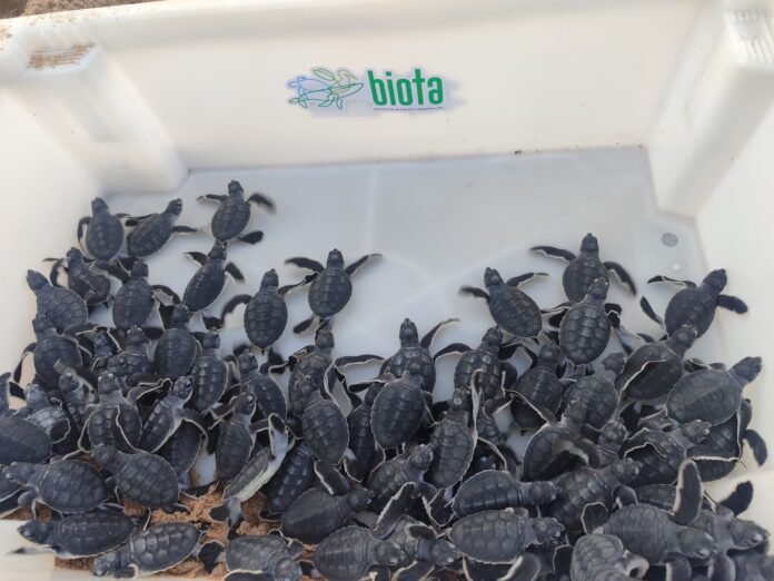 O Instituto Biota de Conservação realizou na última sexta-feira (9) a soltura de 76 filhotes de tartaruga na praia de Guaxuma, em Maceió.