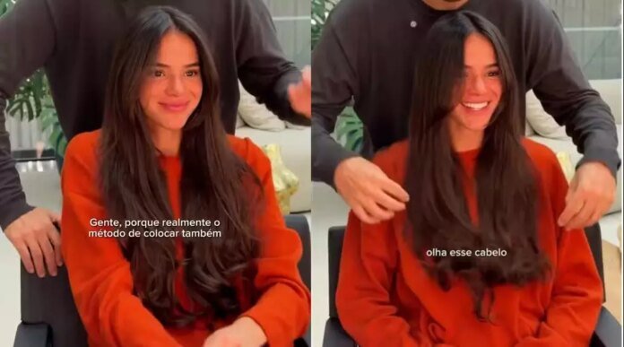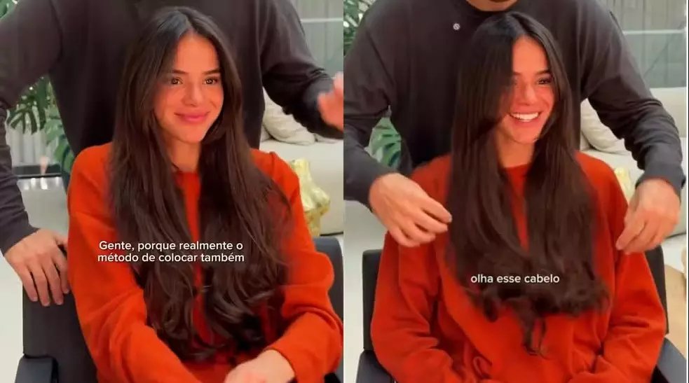 Bruna, por sua vez, comentou que amou o resultado. “”Uma sereia, olha esse cabelo”. Na sequência, a atriz mostrou que, mesmo tendo cabelo fino, consegue prender com o alongamento sem parecer que está usando uma extensão. “Meu cabelo é muito fino, parece cabelo de criança”.