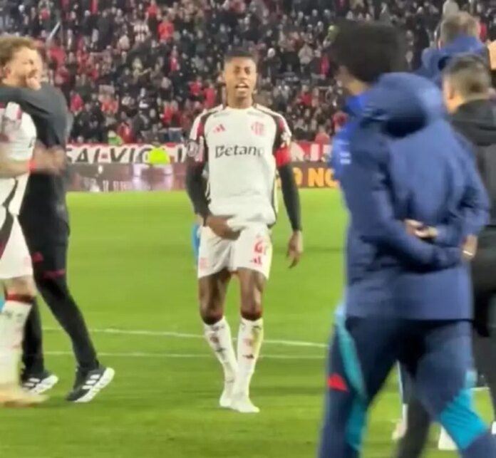 O camisa 27 do Flamengo virou alvo de processo disciplinar na Conmebol no dia seguinte à classificação no estádio Jorge Luis Hirschi, em La Plata. Em vídeos captados da beira do campo, o jogador, que entrou no segundo tempo da derrota por 1 a 0, aparece mostrando o dedo do meio e segurando as genitálias após a vitória na disputa de pênaltis.