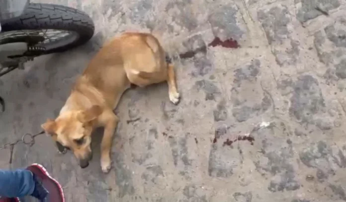 Cachorro amarrado em corda sangra na rua após ser arrastado por motociclista | Foto: Já é Notícia