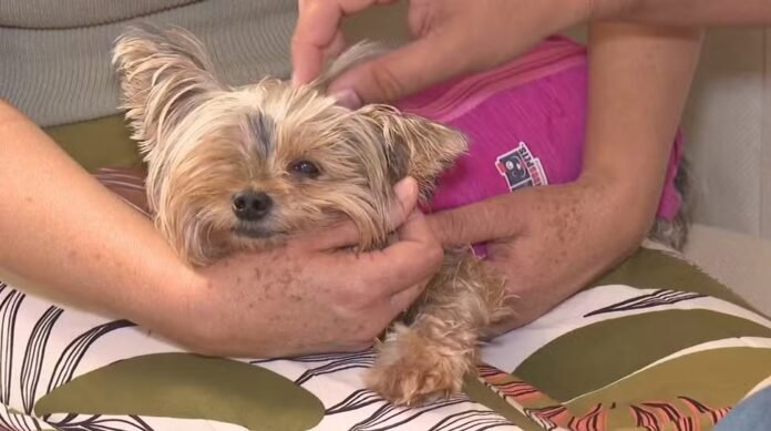 A cachorrinha Babi tem 12 anos, e há pouco mais de um ano foi diagnosticada com uma hérnia. Há dois meses, ela passou a sentir dores na região e precisou fazer uma cirurgia.