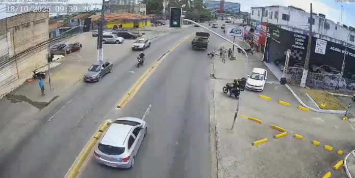 As câmeras de monitoramento da Secretaria de Segurança Pública (SSP) registraram um atropelamento em um trecho da Avenida Juca Sampaio, no Feitosa. O acidente ocorreu neste sábado, 18, próximo a um shopping instalado na região.