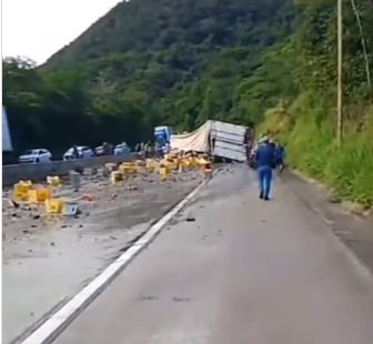 A recomendação é que os motoristas evitem o trecho e busquem rotas alternativas enquanto o trabalho de remoção da carga e do veículo é realizado.