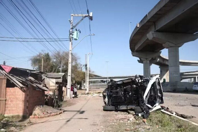 Durante o acidente, uma das caminhonetes se desprendeu da carreta e caiu de uma altura aproximada de 20 metros sobre a Rua Voluntários da Pátria. O veículo já foi removido. O motorista da carreta teve ferimentos leves, segundo a Polícia Rodoviária Federal (PRF).