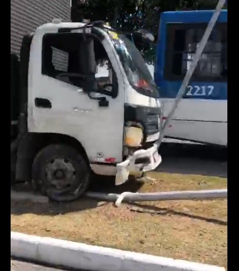 Imagens que circulam nas redes sociais mostram o caminhão próximo ao canteiro da avenida após colidir com a estrutura. Com a força da batida, o poste caiu e acabou atingindo também um veículo que trafegava pelo local.