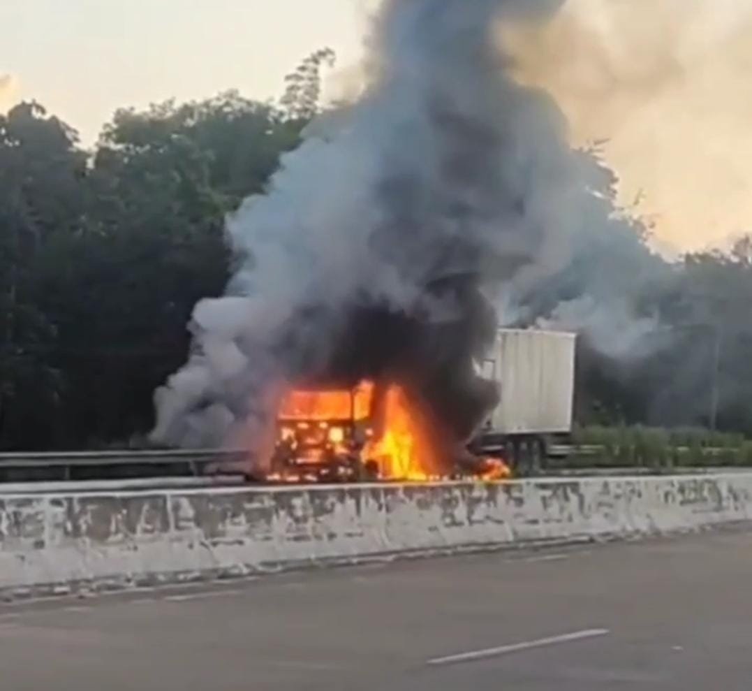 Em imagens enviadas ao TNH1, é possível ver as chamas consumindo o veículo e chegando a atingir parte da pista. Além disso, em outro momento, dá para observar a quantidade de fumaça saindo do caminhão. Veja o vídeo: