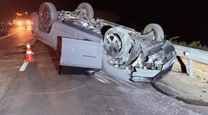 De acordo com a Polícia Rodoviária Federal (PRF), ao tombar, o veículo de carga invadiu a pista contrária e bateu de lado no automóvel, que capotou.