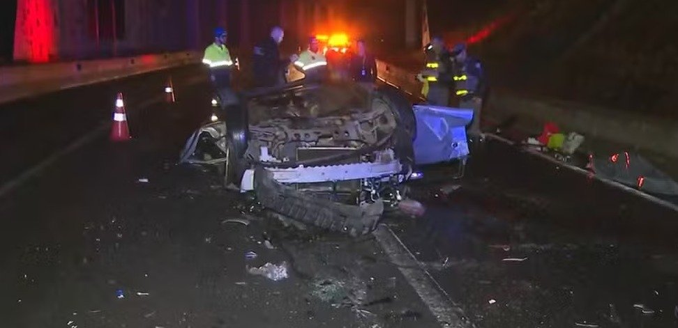 Um carro ocupado por cinco jovens despencou de uma alça de acesso do Rodoanel, em São Bernardo do Campo, na Grande São Paulo, na noite deste domingo (9). Quatro morreram e apenas uma sobreviveu.