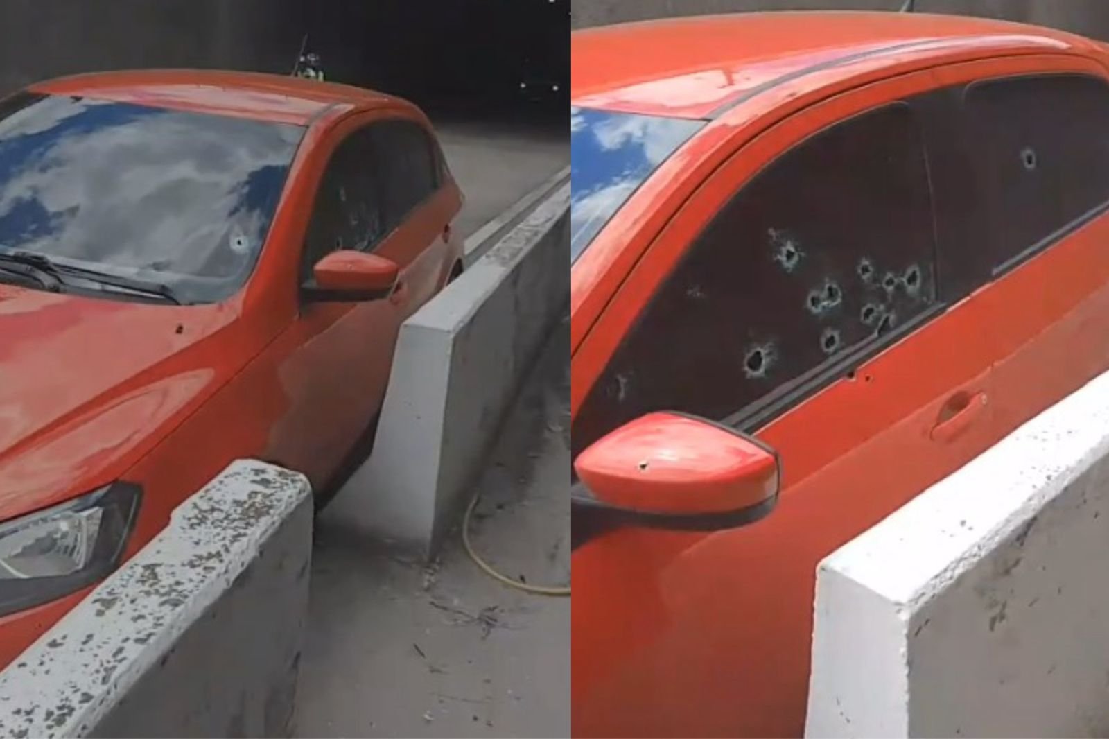 O veículo que o homem conduzia, um Gol de cor vermelha, foi alvejado com ao menos 10 disparos de arma de fogo; assista ao vídeo: