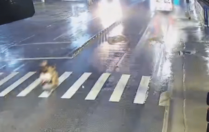O vídeo mostra o momento que a motocicleta atinge um “gelo baiano” e, desgovernada, invade a contramão da avenida. Em seguida, o veículo é atingido por um caminhão que trafegava no sentido contrário.