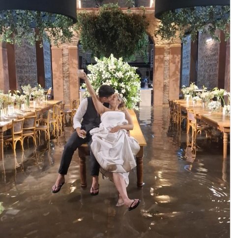 Chuva alaga espaço de eventos durante casamento e gera revolta de casal nas redes sociais