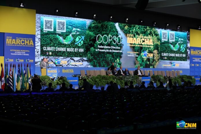 Os Municípios são os Entes que mais sofrem com as mudanças climáticas. A temática foi tratada com o secretário-executivo do Ministério da Integração e do Desenvolvimento Regional (MIDR), Valder Ribeiro de Moura. “Para os Municípios eventos climáticos extremos é devastador. Os Municípios têm tido um aumento significativo em termos de desastres e aumento em relação a decretação de emergência e calamidade. Nesse cenário, a COP 30 representa a centralidade do Brasil na discussão da mudança climática ambiental”, apontou.