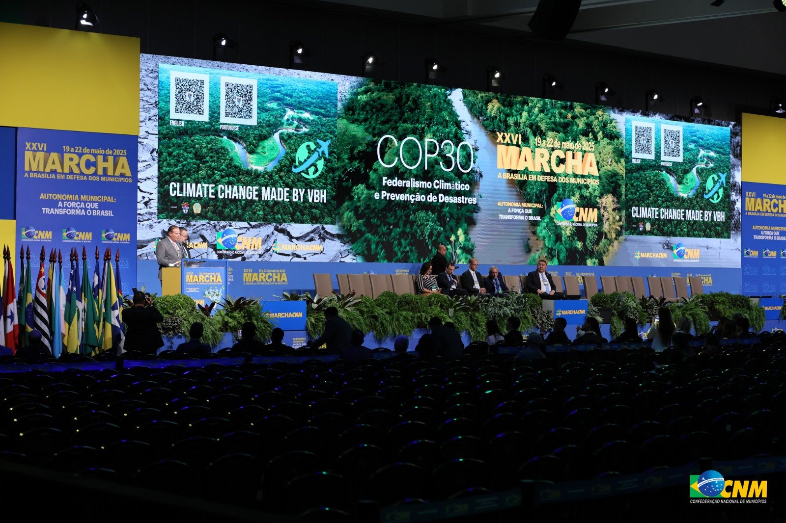 Os especialistas subiram a plenária que aconteceu na tarde desta quarta-feira, 21 de maio, e foi coordenada pelo 1º tesoureiro da CNM e prefeito de Santarém (PA), Nélio Aguiar. Ele lembrou que a CNM busca espaço no debate mundial. “Estamos conversando com os organizadores para que a gente possa ter um momento dos Municípios e para que a gente possa ser ouvido e possamos colocar nossas posições”, destacou.
