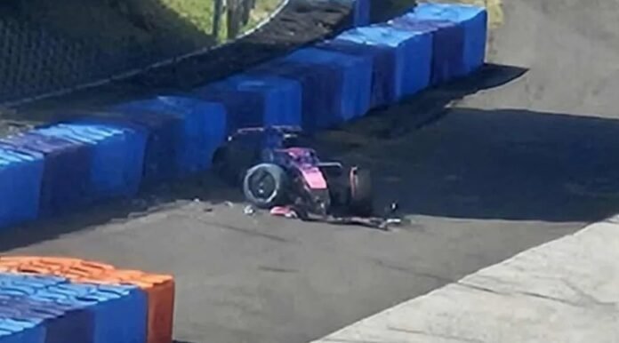 A Alpine informou em comunicado que Colapinto, que substituiu o piloto reserva Paul Aron no último dia, sofreu “um incidente” na curva 11, uma curva para a direita que pode ser percorrida a 220 km/h.