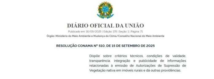 O Conselho Nacional de Meio Ambiente publicou a Resolução Conama 510/2025, que dispõe sobre critérios técnicos e condições de validade para a emissão de Autorizações de Supressão de Vegetação (ASV) nativa em imóveis rurais. A medida tem como principal objetivo trazer mais transparência, integração e publicidade a essas informações. A Confederação Nacional de Municípios (CNM) destaca que os efeitos da normativa são aplicados a todas ASVs, independentemente das tipologias e variações de nomenclaturas adotadas pelos órgãos competentes.