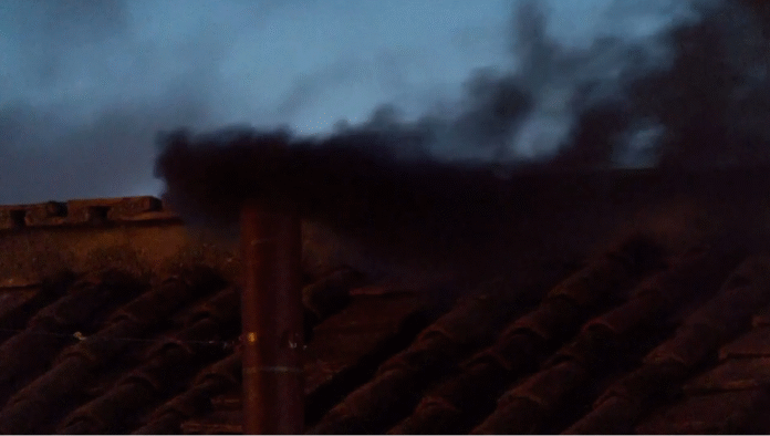 Fumaça preta foi vista saindo da chaminé da Capela Sistina nesta quarta-feira (7), indicando que os cardeais não chegaram a um consenso para eleger o próximo papa.