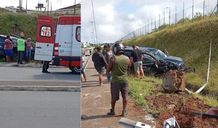 Equipes do Serviço de Atendimento Móvel de Urgência (SAMU) foram acionadas e prestaram socorro à condutora, que estava dentro do veículo no momento do acidente. O airbag do veículo foi acionado, o que pode ter evitado ferimentos mais graves.