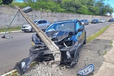 Uma motorista se envolveu em uma colisão contra um poste na manhã desta segunda-feira (24).