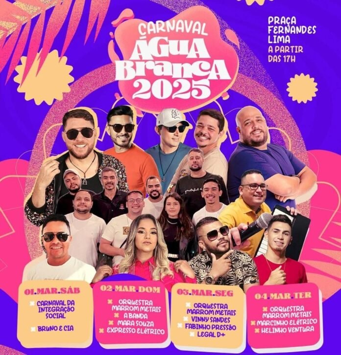 Água Branca: Shows de sábado (1º) até terça-feira (04) na Praça Fernandes Lima, com início a partir das 17h.