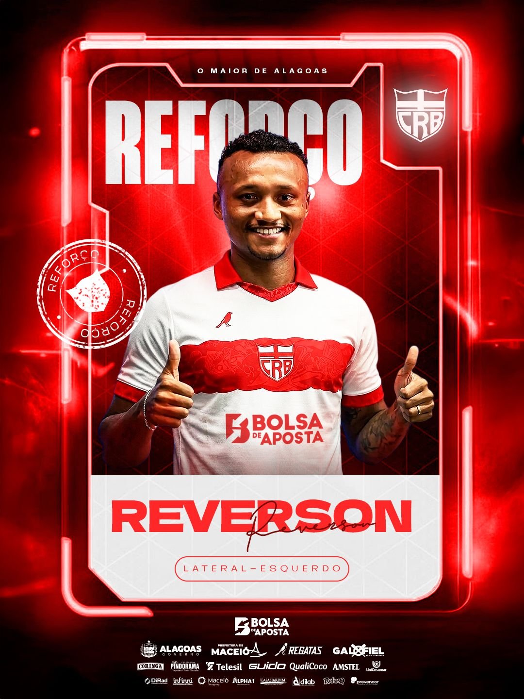 O CRB anunciou oficialmente na noite dessa sexta-feira (24) a contratação do lateral-esquerdo Reverson. O jogador de 29 anos chega ao clube para fortalecer o setor defensivo do “Galo de Campina” após apresentar números expressivos em sua última passagem pelo futebol paraense.