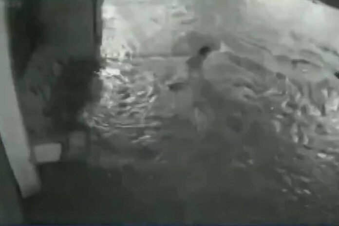 Imagens de câmera de segurança mostram a menina acompanhada por um homem. Ele mergulha na água e sai nadando, enquanto a garota se aproxima do bueiro, aparentemente com a tampa aberta, e é sugada para dentro.