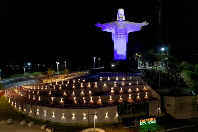 Cristo do Goiti é iluminado de azul em apoio à campanha de prevenção ao câncer de próstata – Prefeitura Municipal de Palmeira dos Índios