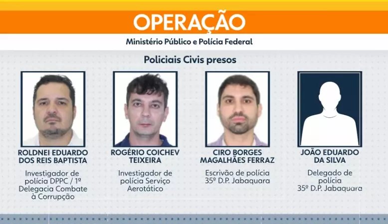De acordo com o Ministério Público, todos são suspeitos de integrar o esquema de corrupção em setores estratégicos da Polícia Civil de São Paulo.