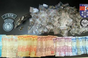 Durante a averiguação, os policiais localizaram, em um dos quartos da casa, um revólver calibre 32 sem numeração, duas munições intactas, 109 papelotes de uma substância análoga à maconha (pesando cerca de 120 gramas) e R$ 1.009,60 em espécie.